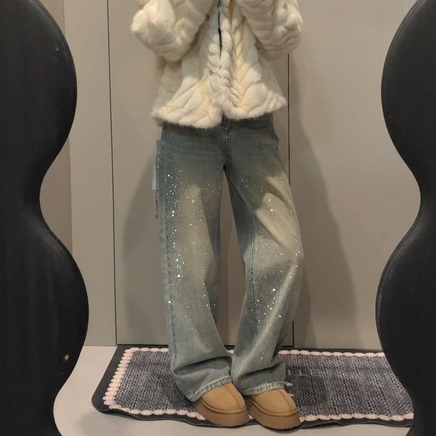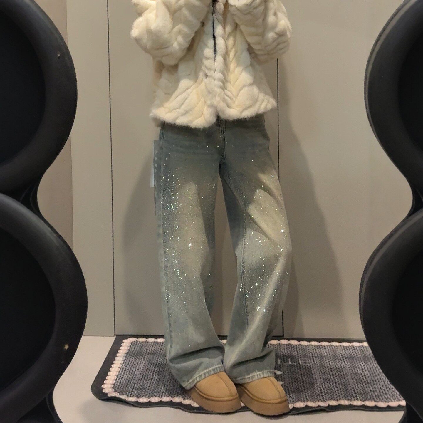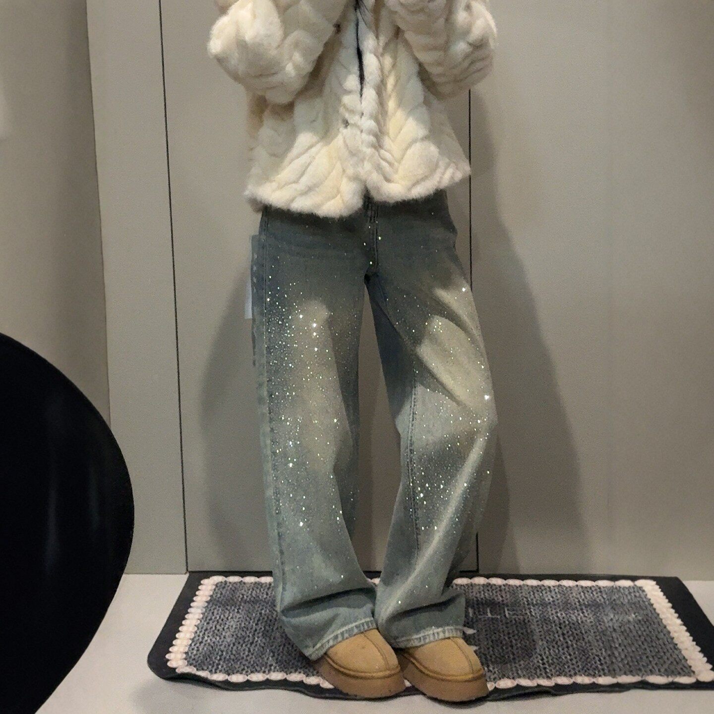 复古满天星烫钻阔腿牛仔