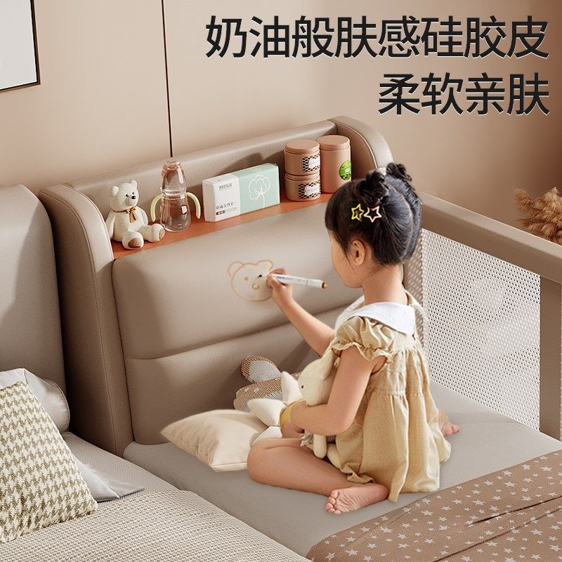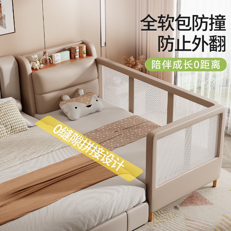 软包拼接神d器加宽床大人可睡婴儿带护栏实木床男女宝宝床边儿童