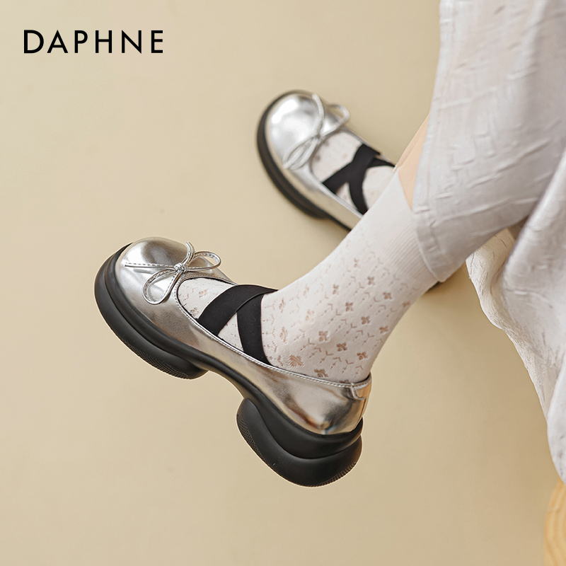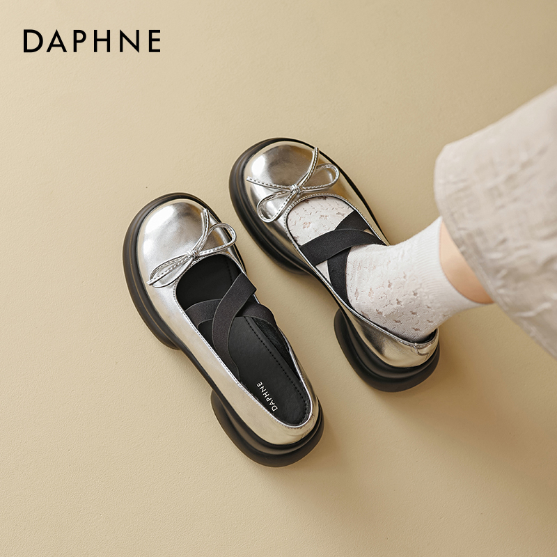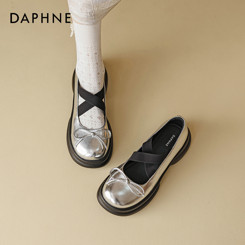 达芙妮银色玛丽珍鞋女2025春季新款小个子厚底单鞋交叉绑带配裙子