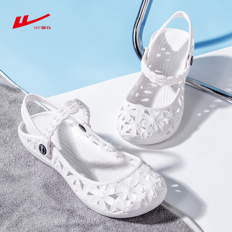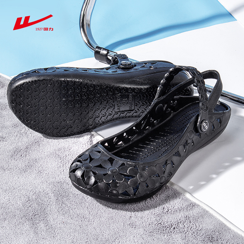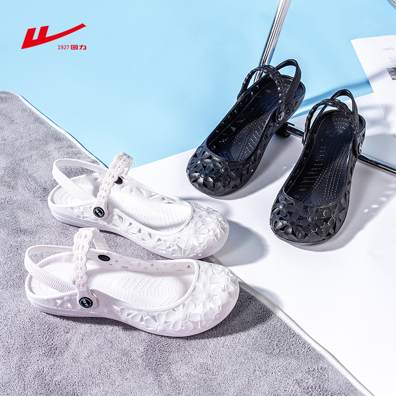 回力凉鞋女塑料镂空夏季新款洞洞鞋平底护士鞋坡跟女软底黑色凉鞋