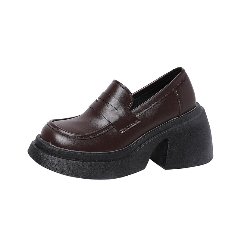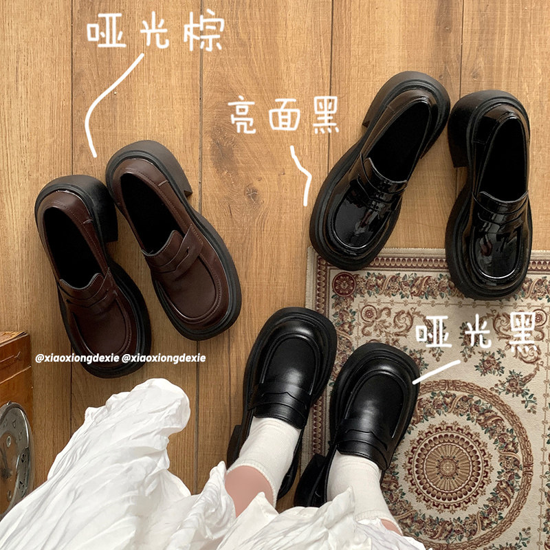 小熊的鞋【小个子天菜】厚底粗跟乐福鞋女2025新款日系复古小皮鞋