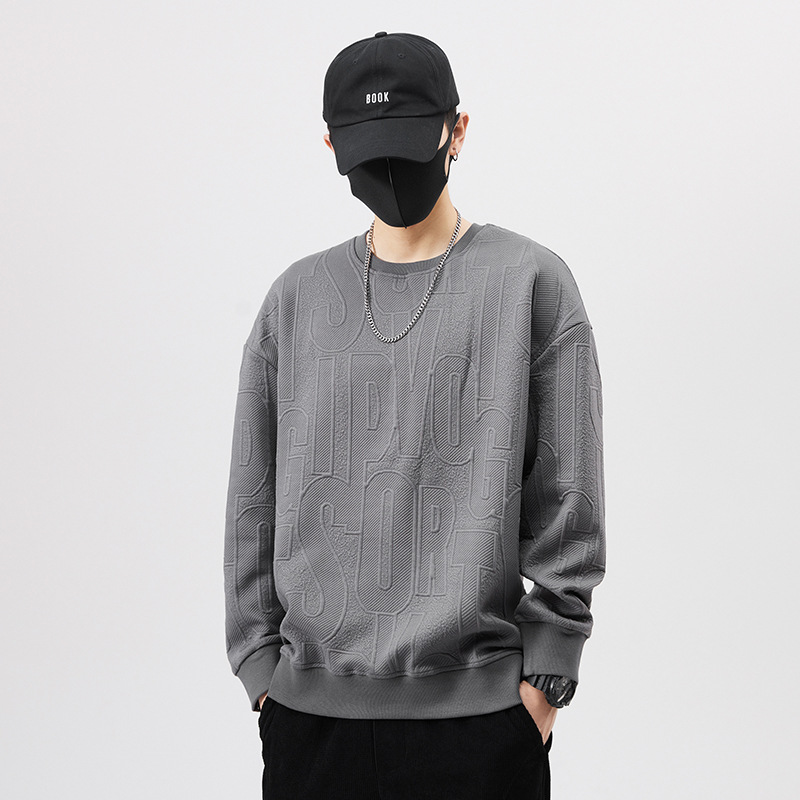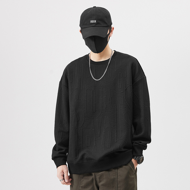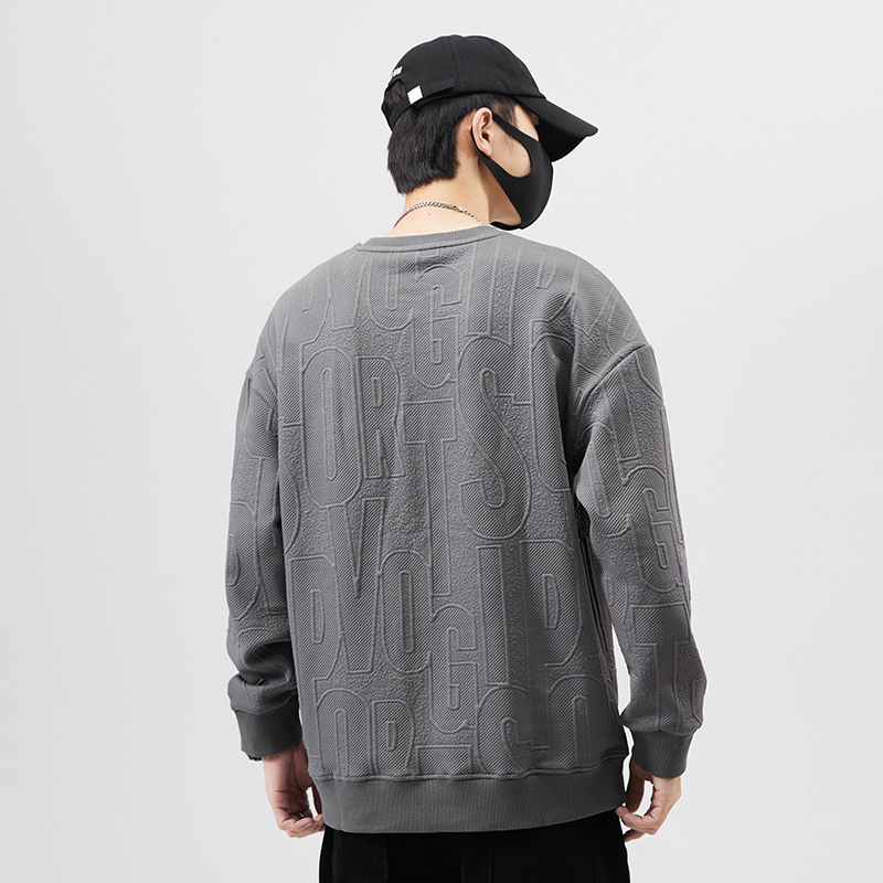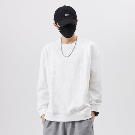 新品时尚ins休闲卫衣男士季字母提花宽松百搭圆领长袖衣服时尚百