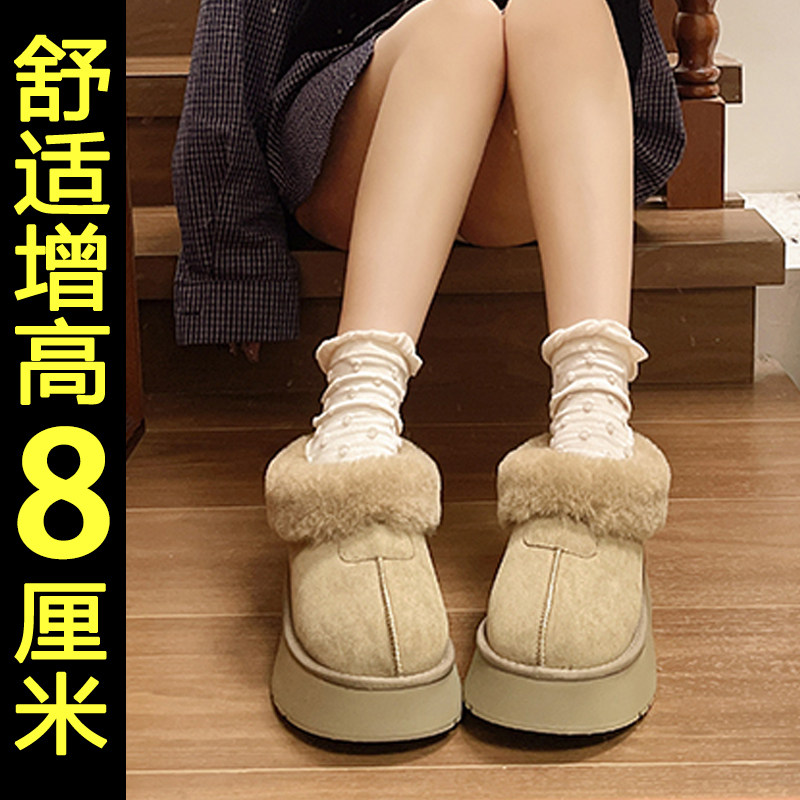 内增高东北雪地靴女2025冬季新款厚底毛毛面包鞋加绒加厚保暖棉鞋