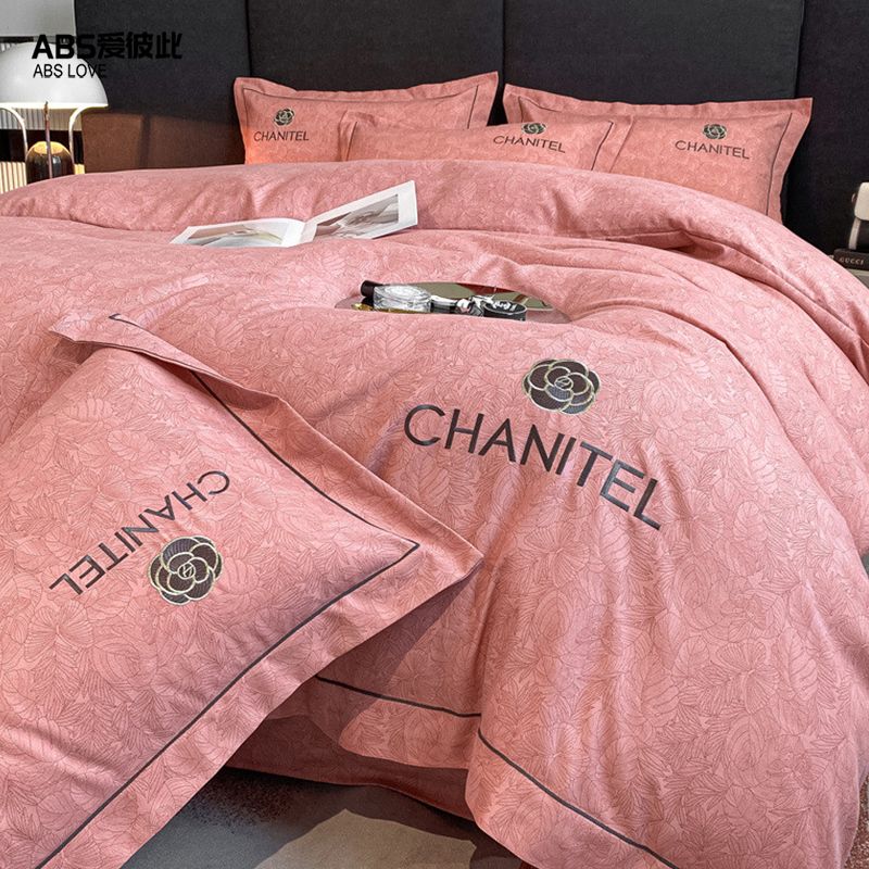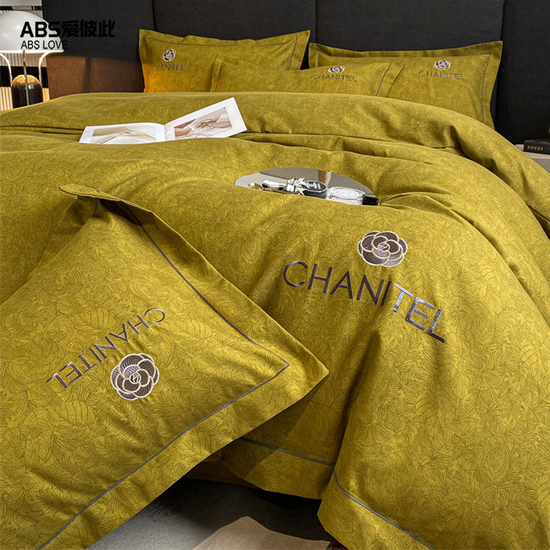 ABS爱彼此水洗磨毛四件套轻奢简约刺绣被套床单床上用品四季通用