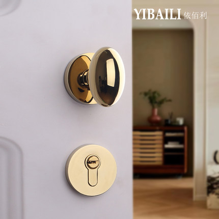 依佰利法式仿古复古不锈钢拉丝银椭圆鸭蛋球形鹅蛋卧室静音门锁