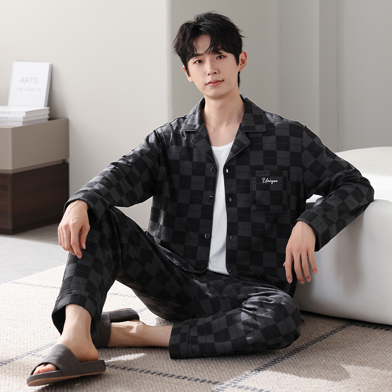 猫人睡衣男士纯棉秋冬男款长袖休闲高级感开衫春秋薄款家居服套装