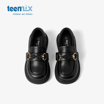 天美意2025年新款春秋女童软底鞋子女宝宝黑色小皮鞋儿童公主鞋