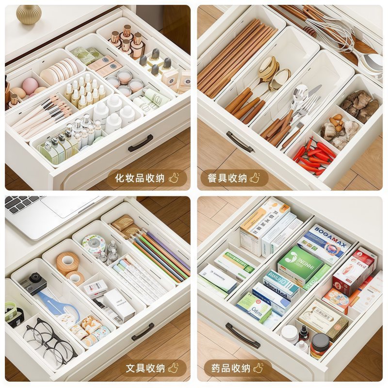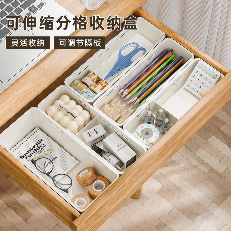 伸缩文具用品收纳盒分格收纳可调节抽屉式内置伸清洁器文具收纳盒