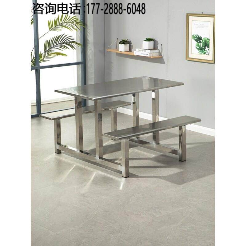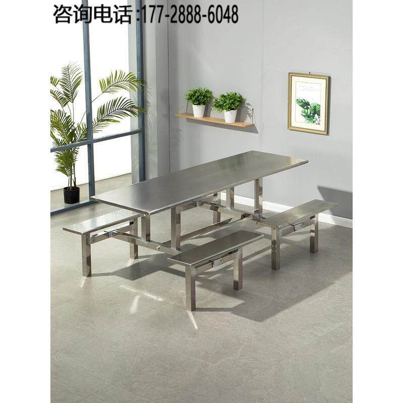 不锈钢连体快餐桌椅现代简约6人位加厚 安徽产8人位食堂餐桌椅组