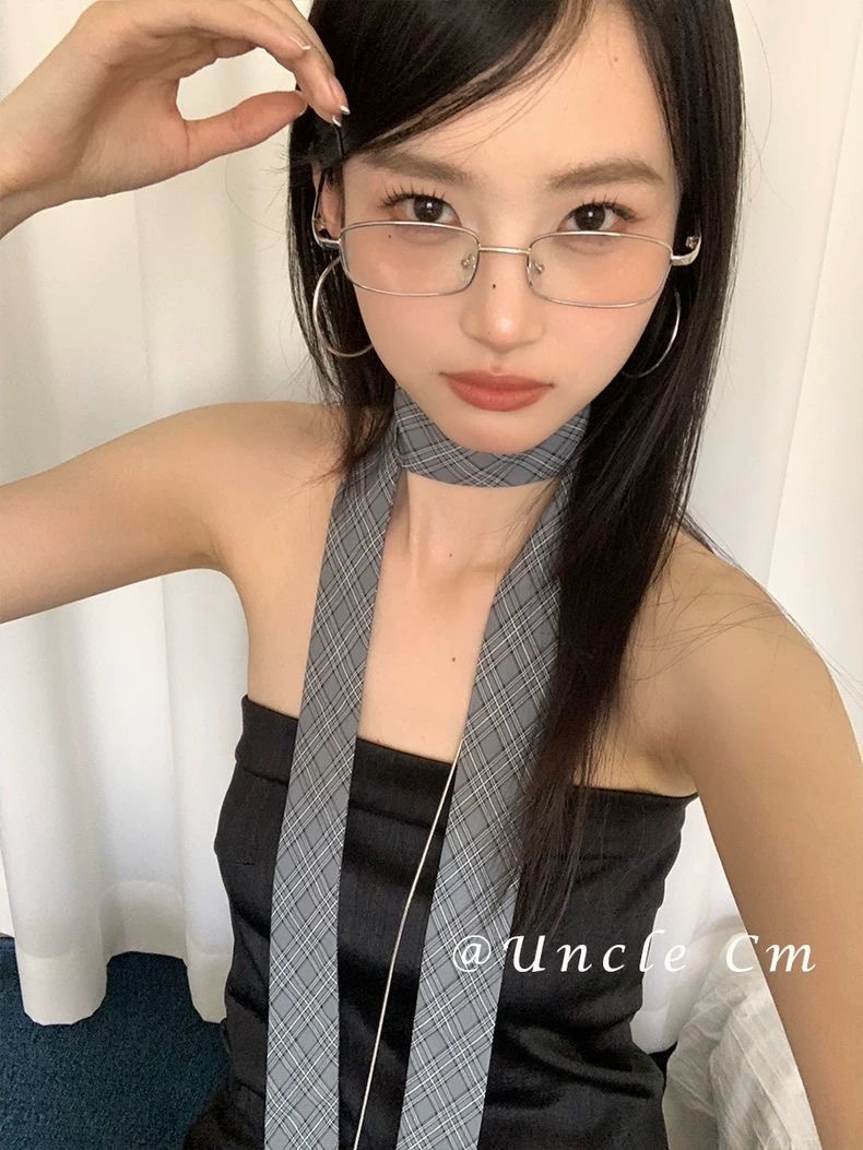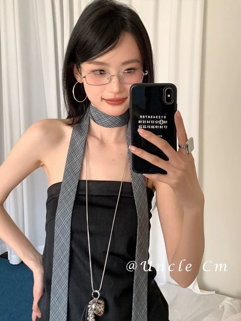2025年高级感时髦格纹丝巾女细窄长条小围巾薄款系脖配饰颈带发带