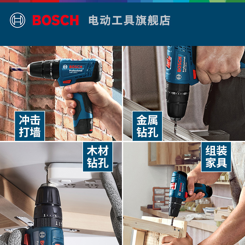 博世锂电充电式手电钻冲击钻多功能螺丝刀充电式电动工具组套