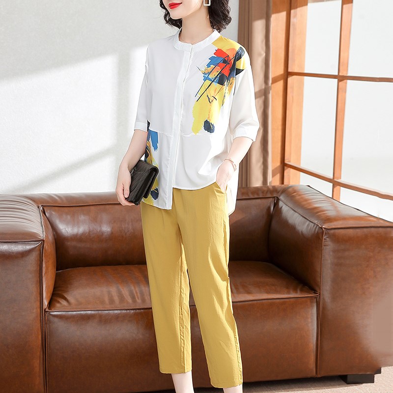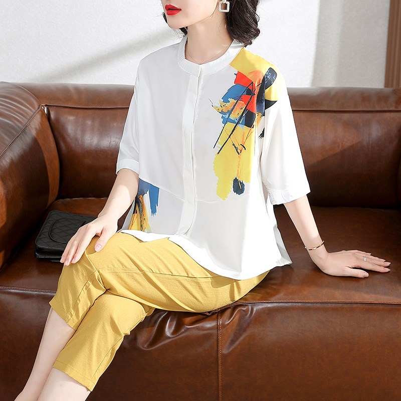 妈妈夏装时尚套装中年女士洋气短袖T恤50岁中老年宽松大码上衣服
