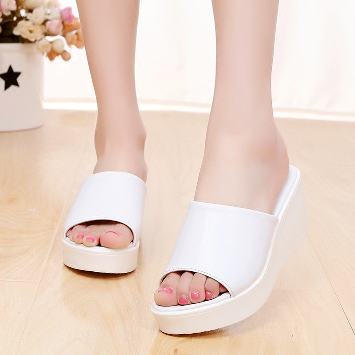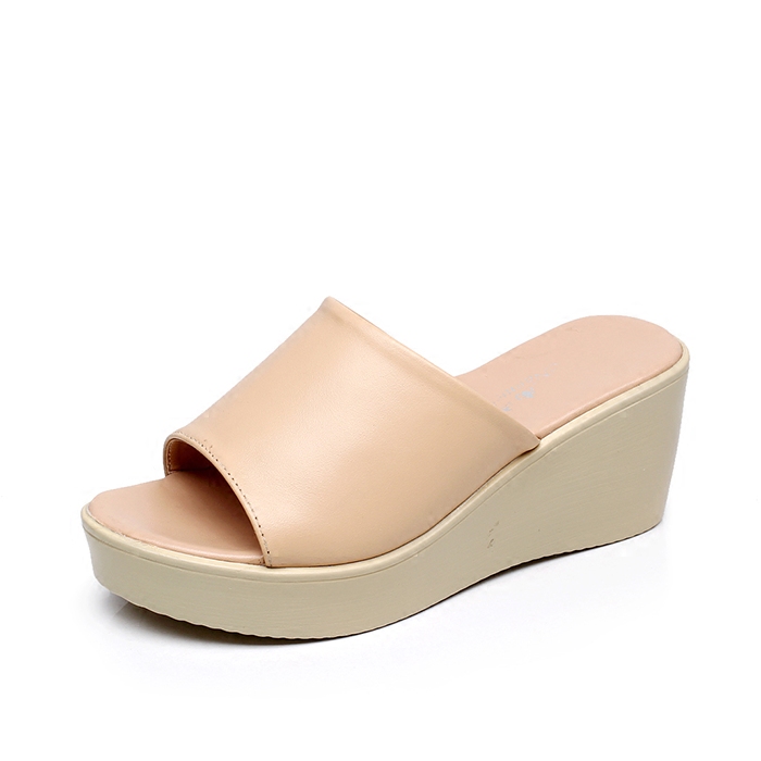 松糕真皮夏季平底中跟休闲风凉拖