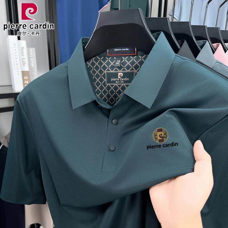 皮尔卡丹桑蚕丝短袖t恤男士夏季新款冰丝免烫半袖休闲翻领POLO衫
