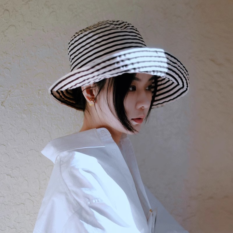 胶片日记夏季条纹渔夫帽子女新款长短檐防晒帽织带时尚盆帽大头围