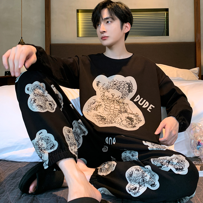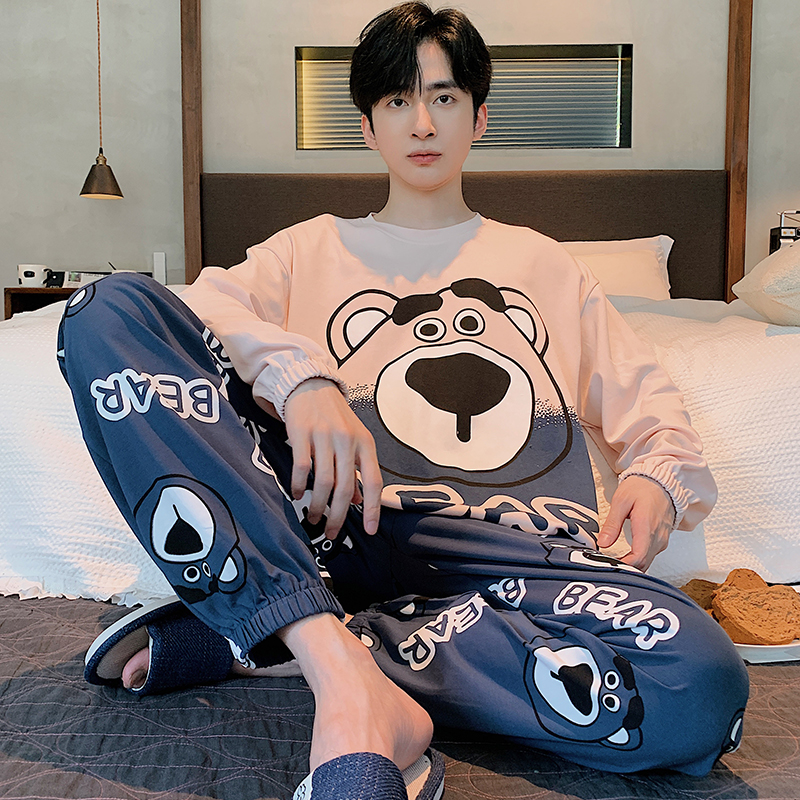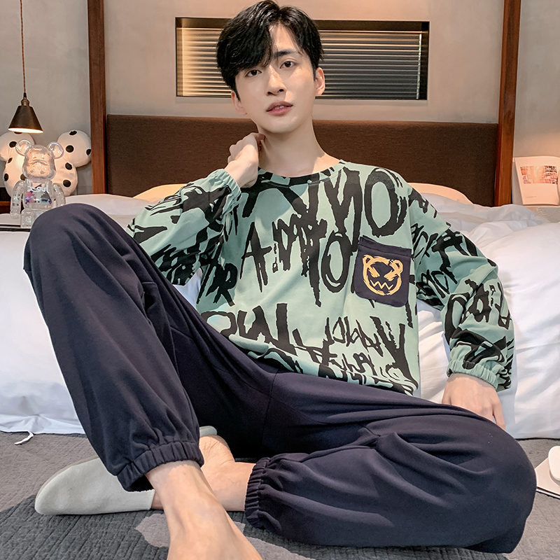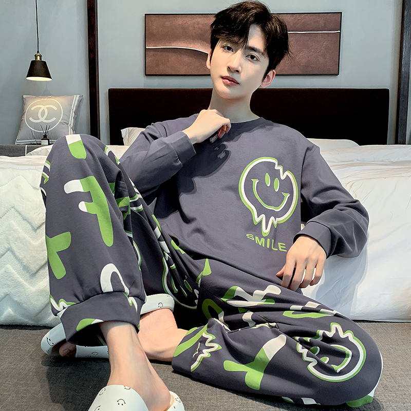 全棉纯棉男士睡衣长袖纯棉春秋大码青少年学生大童男款四季通用家