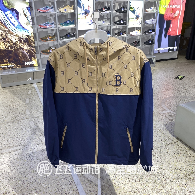 春正品MLB抓绒保暖防风连帽男女运动休闲梭织夹克外套AWJM