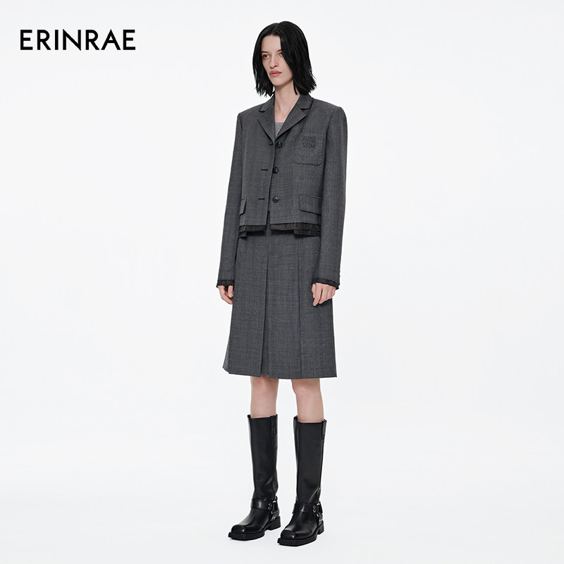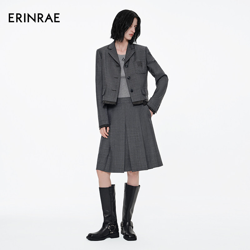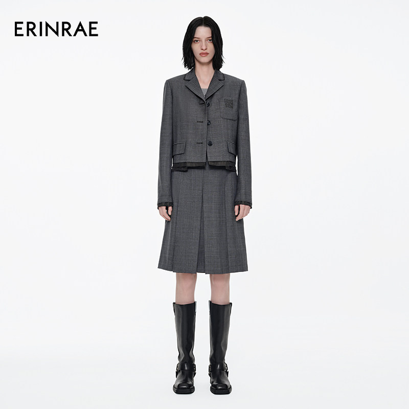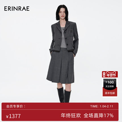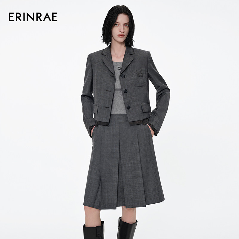 【沈羽洁同款】ERINRAE春季新品miu系学院风进口羊毛西装半裙套装