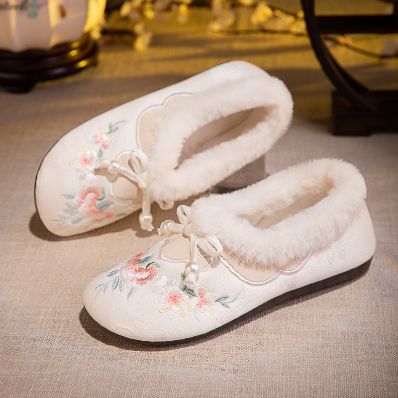 老北京布鞋女2024新款冬季防滑软底时尚妈妈鞋休闲一脚蹬绣花棉鞋