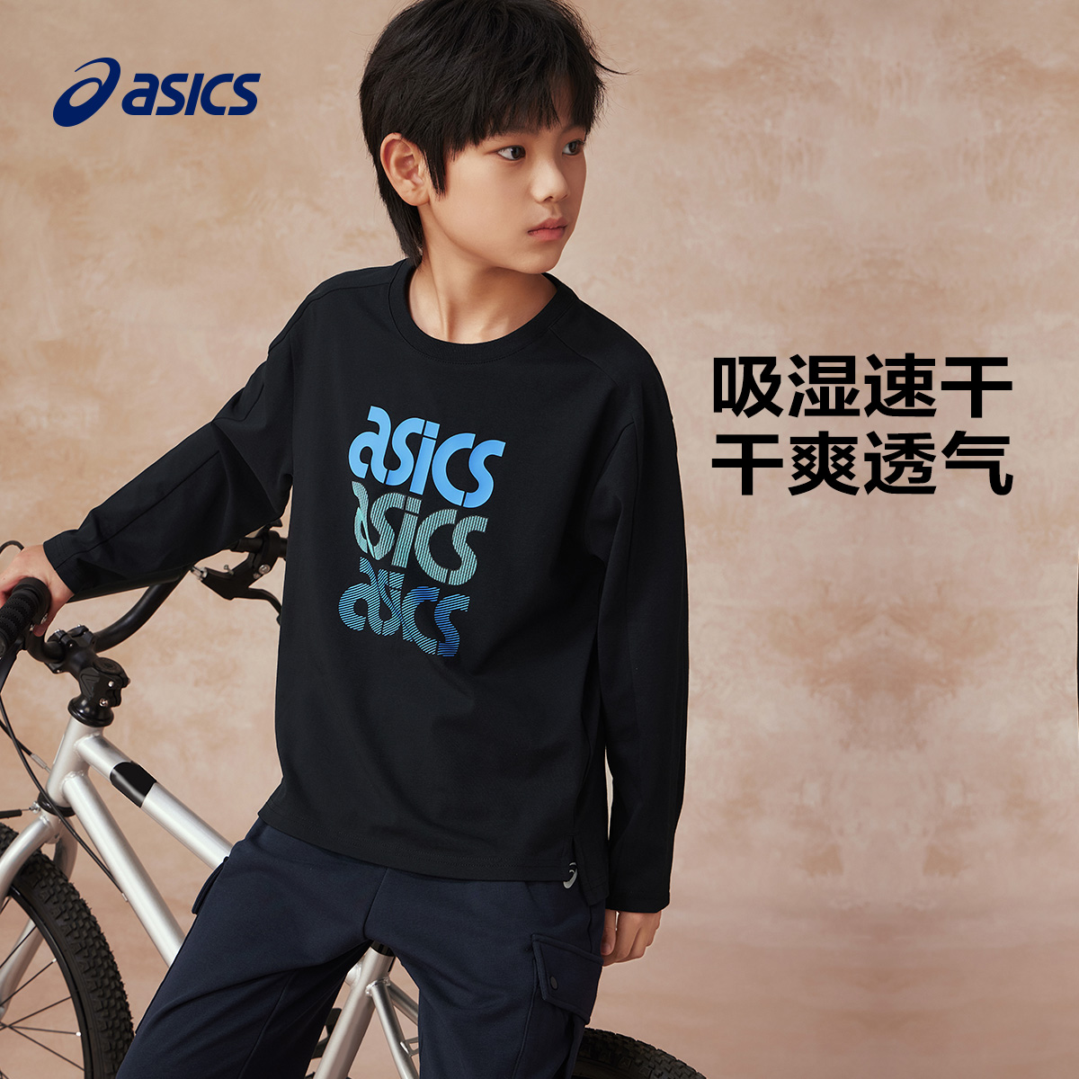 亚瑟士儿童运动长袖T恤25年春秋新款上衣吸湿速干抗菌内搭打底衫