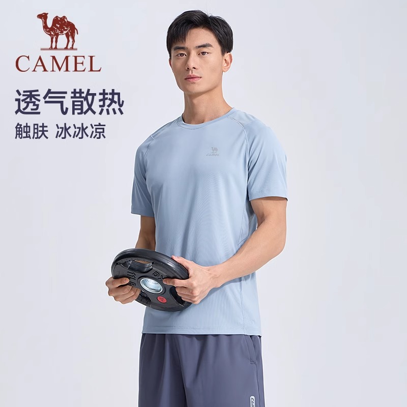 【断码清仓】骆驼运动速干T恤圆领短袖男健身跑步透气休闲上衣女