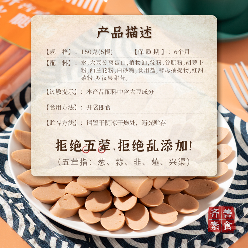 齐善素食素王火腿肠佛家纯素零食素肉豆制品素香肠即食寺院素食