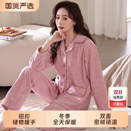 珊瑚绒睡衣女士冬季中年妈妈2023年新款加厚加绒保暖法兰绒家居服