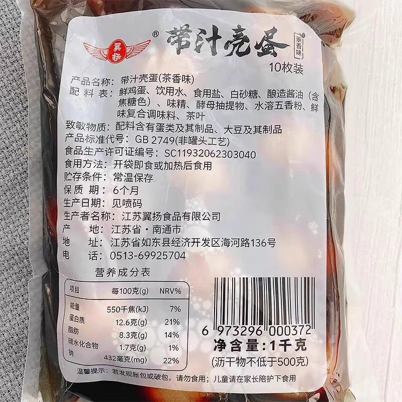 金翼茶叶蛋1kg/10枚茶香鸡蛋早餐带汁带壳翼扬五香蛋商用卤蛋批发