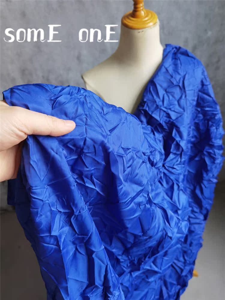 设计布料 三宅一生克莱因蓝 起伏凹凸再生布 褶皱衣裙婚庆礼服