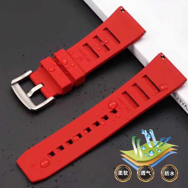适配GEYA格雅长城硅胶手表带男中国航天联名原装款红色橡胶带26mm