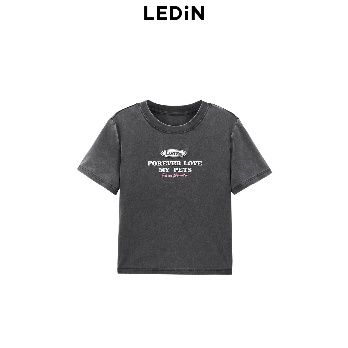 【商场同款】乐町2025秋季新款复古字母印花修身短袖T恤C2CNE3203