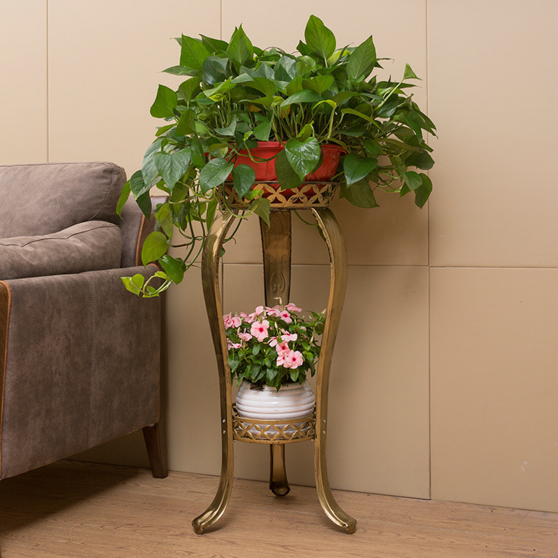 欧式复古新中式绿萝花架子铁艺金属双层花盆架吊兰多肉室内落地式