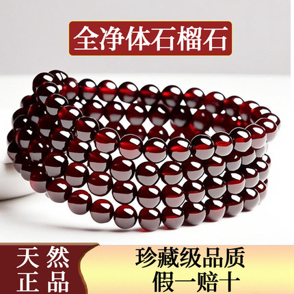天然石榴石手串全净体女款多圈三圈酒红紫牙乌手链原石水晶散珠
