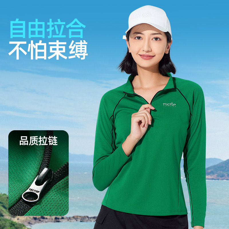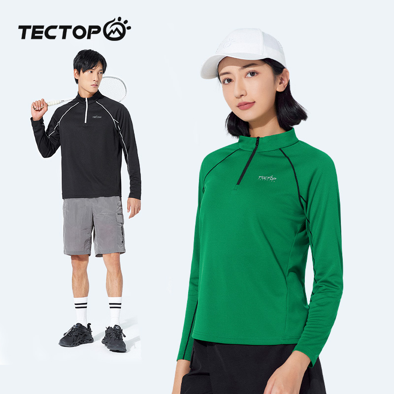 TECTOP/探拓男女秋季速干T恤新款潮牌立领透气长袖运动修身上衣