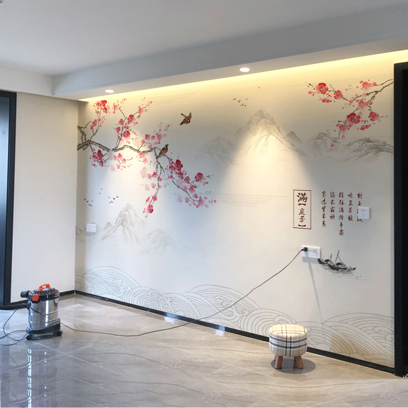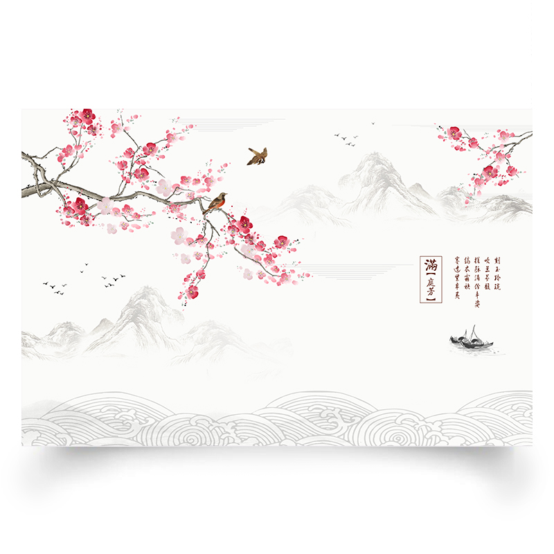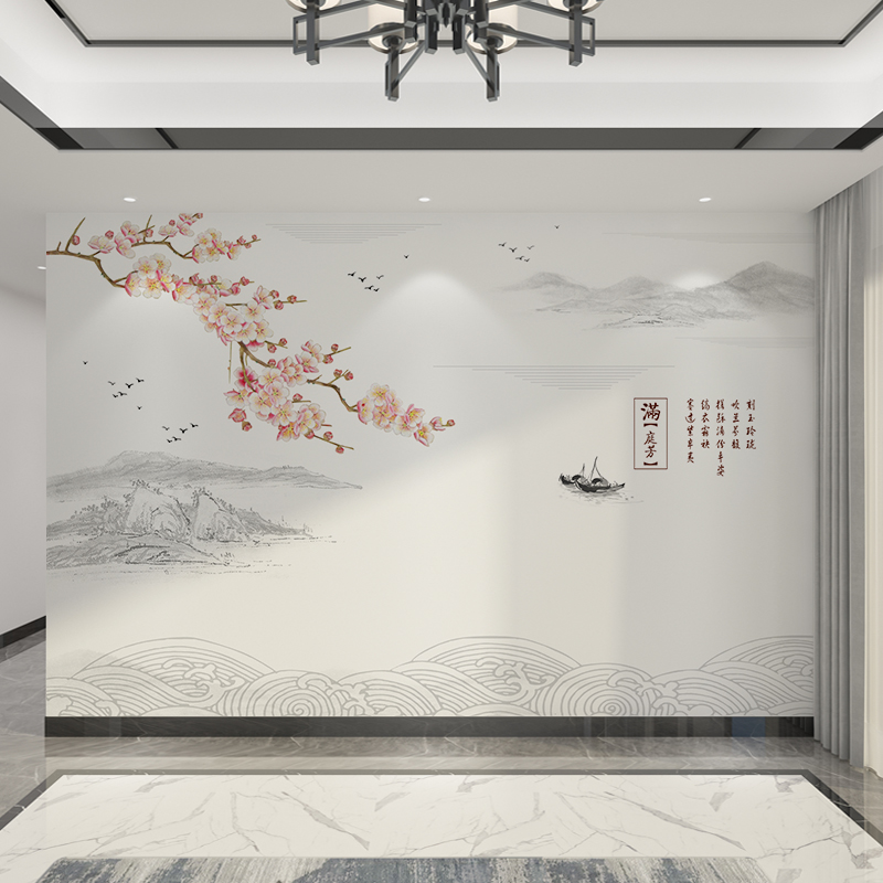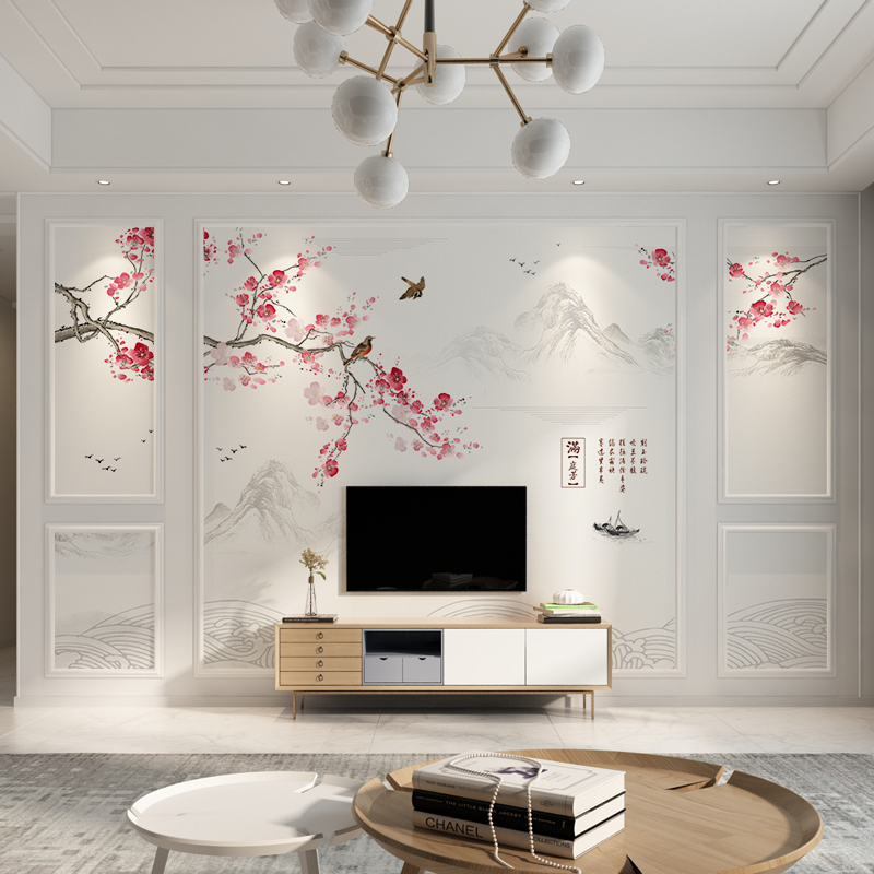2023新款新中式花鸟电视背景墙纸3d立体K客厅卧室现代中式防水墙