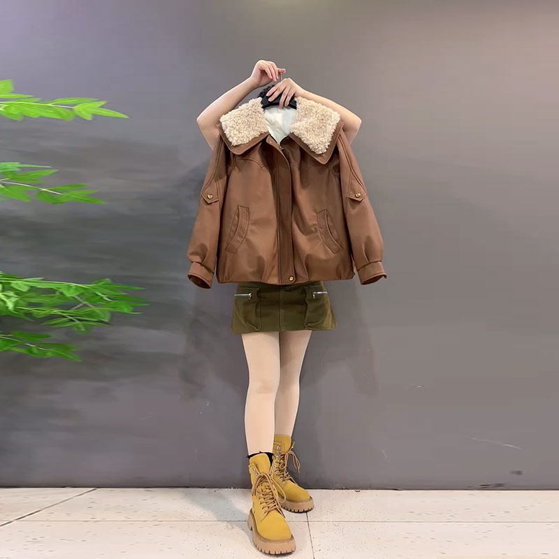 胖妹妹显瘦毛毛翻领长袖外套加肥大码女装冬季款显瘦百搭短款棉服