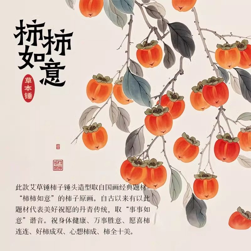 艾草锤柿柿如意手持艾灸锤养生按摩锤艾灸经络疏通锤中秋节伴手礼