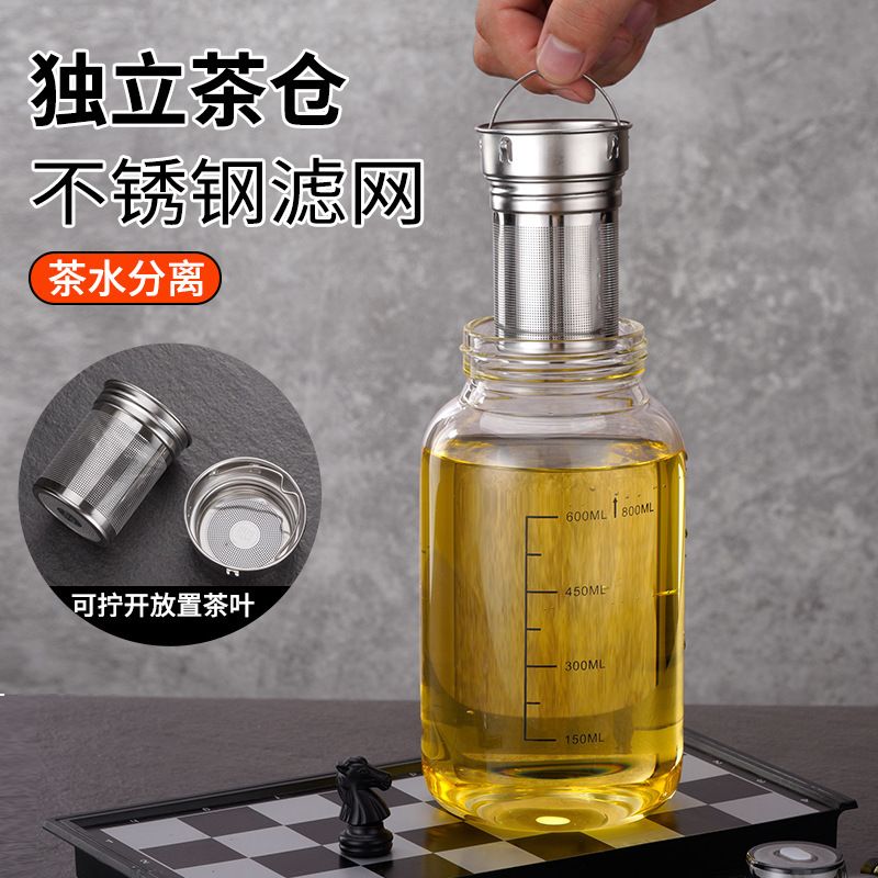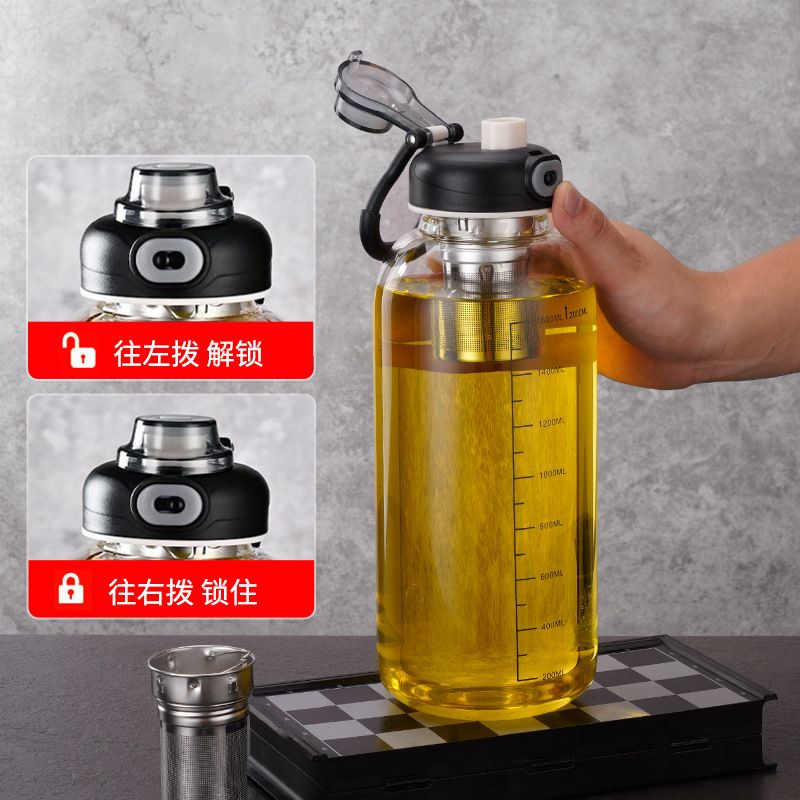 大容量玻璃杯大号茶水分离茶杯2000ml2024新款男水杯夏天夏季杯子
