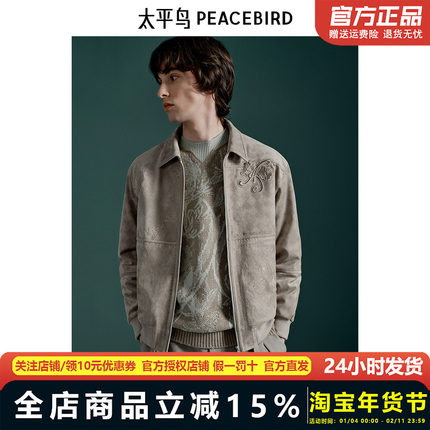 【商场同款】太平鸟男装夹克新款重工棒球服仿麂皮外套 B1BCE4216
