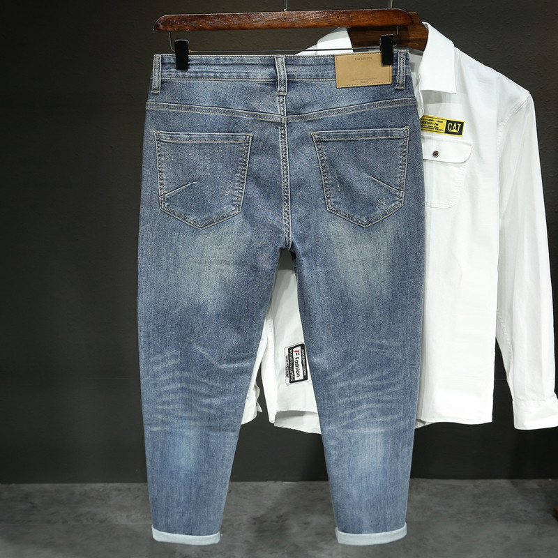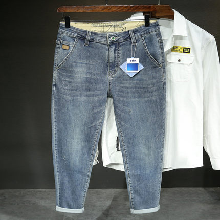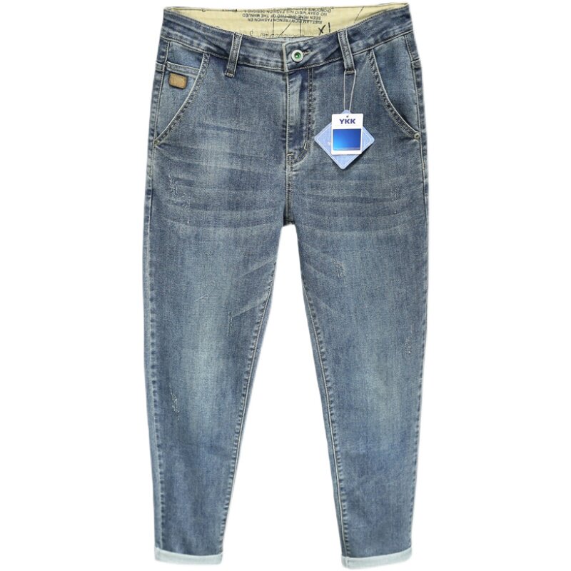 胖子哈伦九分牛仔裤男宽松复古小脚裤加肥加大码胖人弹力显瘦9分