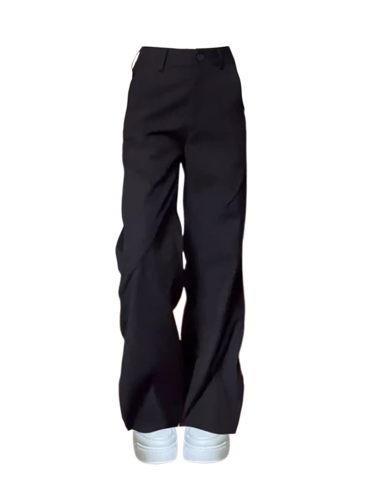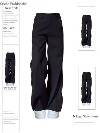 复古设计感褶皱黑色西装裤女2025夏季新款宽松高腰显瘦休闲阔腿裤