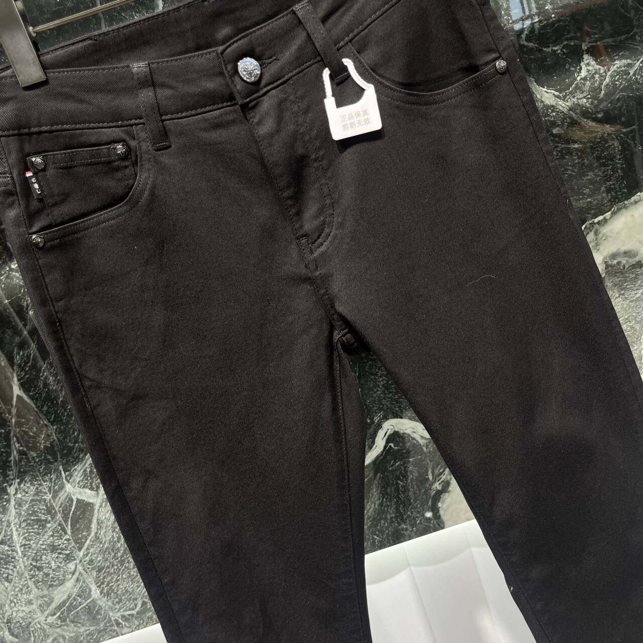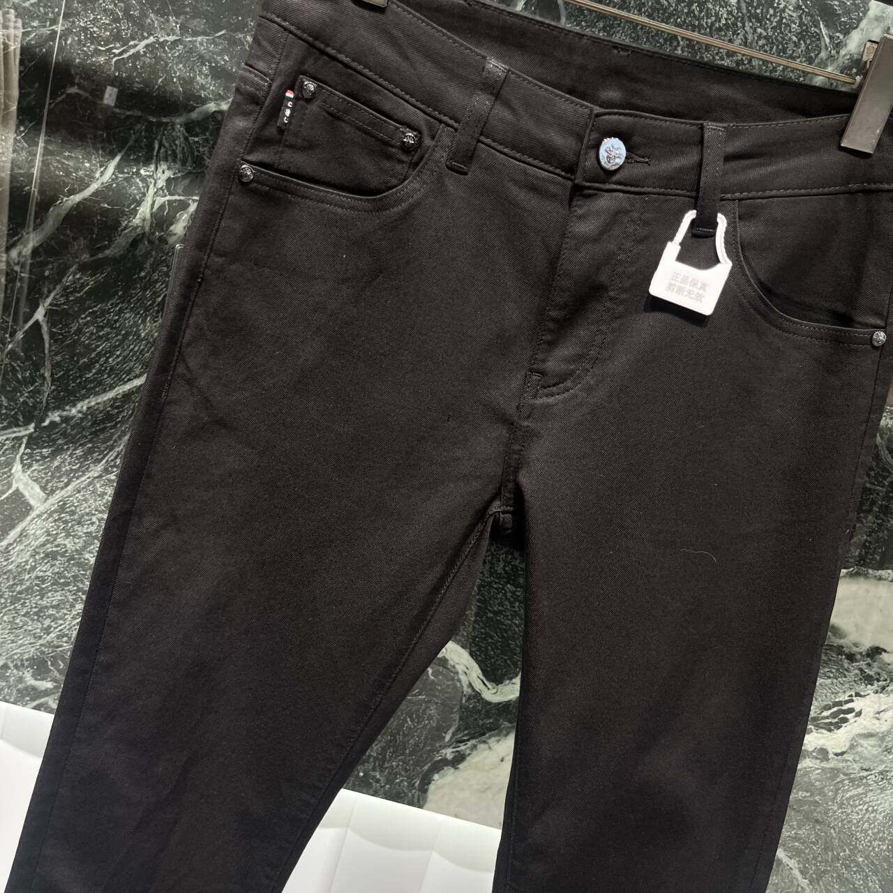 欧货高端春夏季男士黑色牛仔裤薄款小脚修身潮流修身弹力休闲长裤