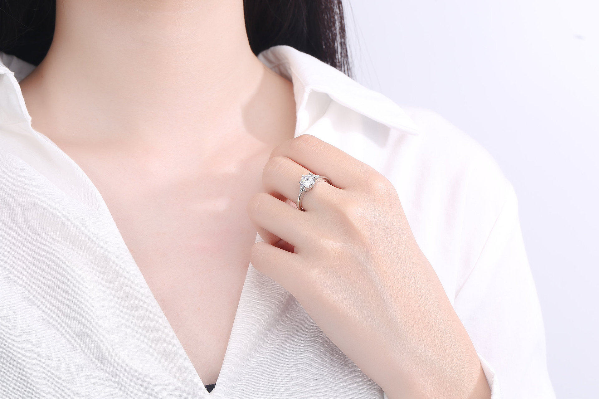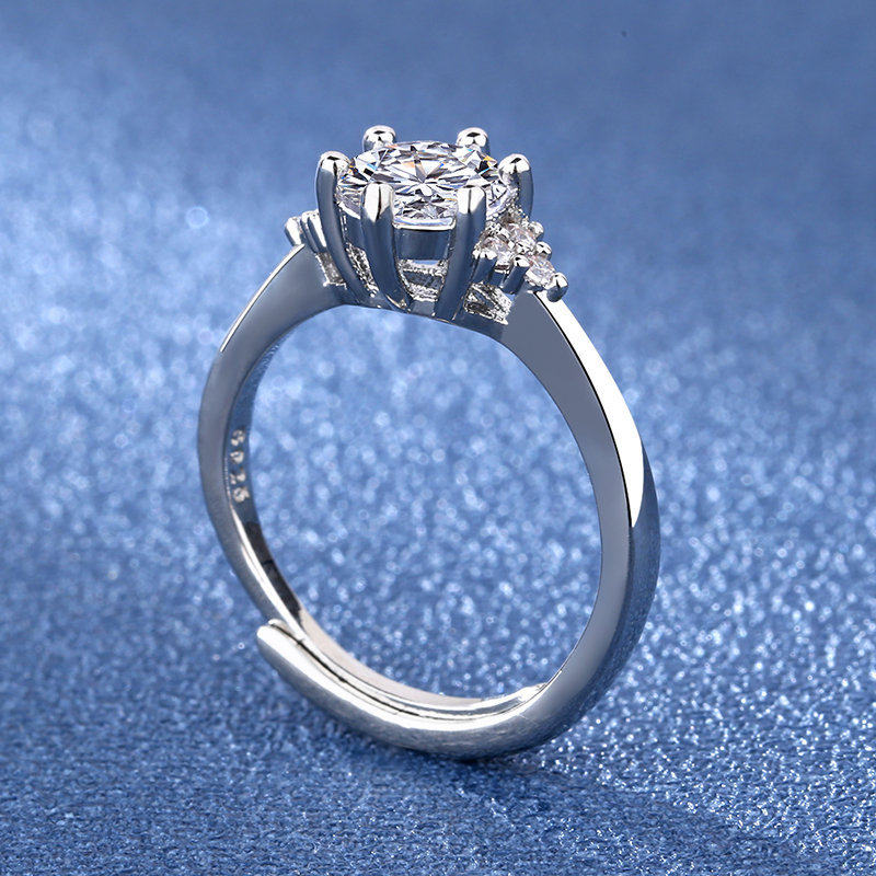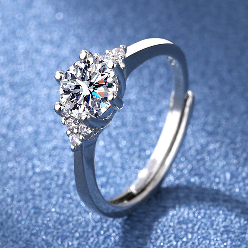 欧美时尚硞石镶嵌镀铂金1克拉钻戒少女简约甜美求婚订婚结婚戒指