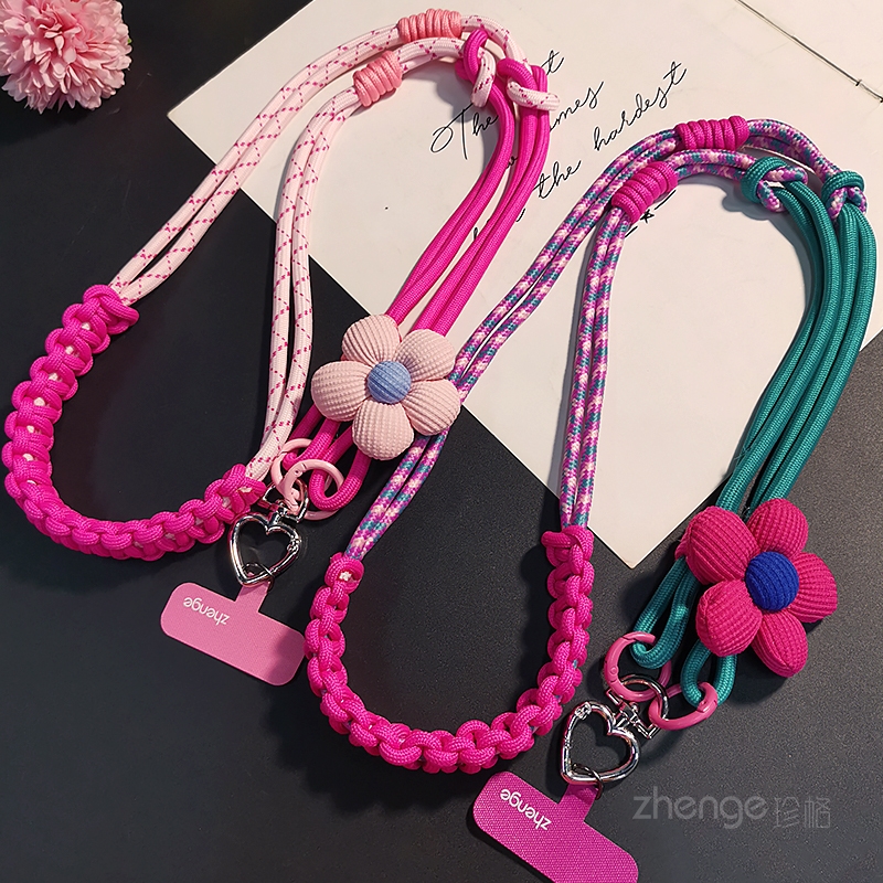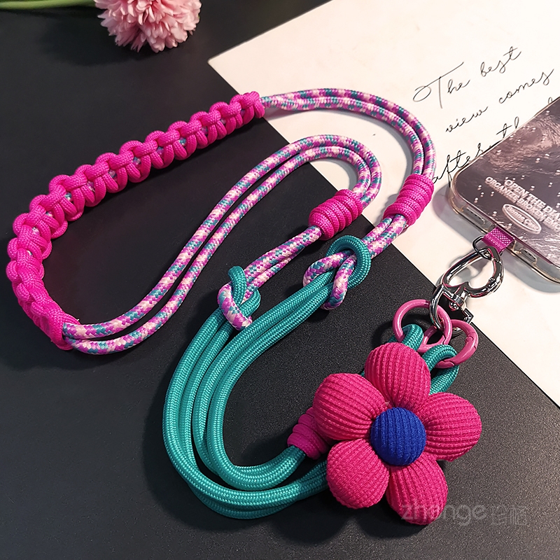 手机挂绳斜挎长款清新撞色花朵编织可挂脖长户外旅游行手提链短款包包相机套壳水杯小蜜蜂侧背肩带百搭女新品