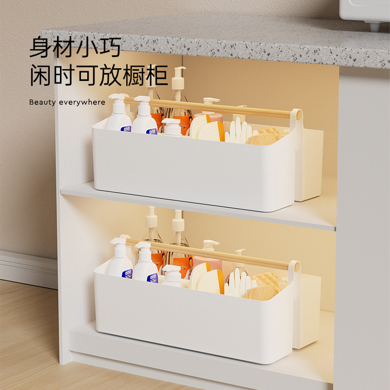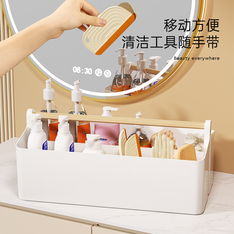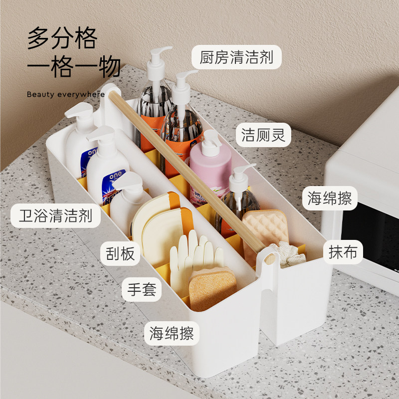 手提清洁工具收纳篮家用厨房多功能分隔杂物篮移动桌面储物收纳筐