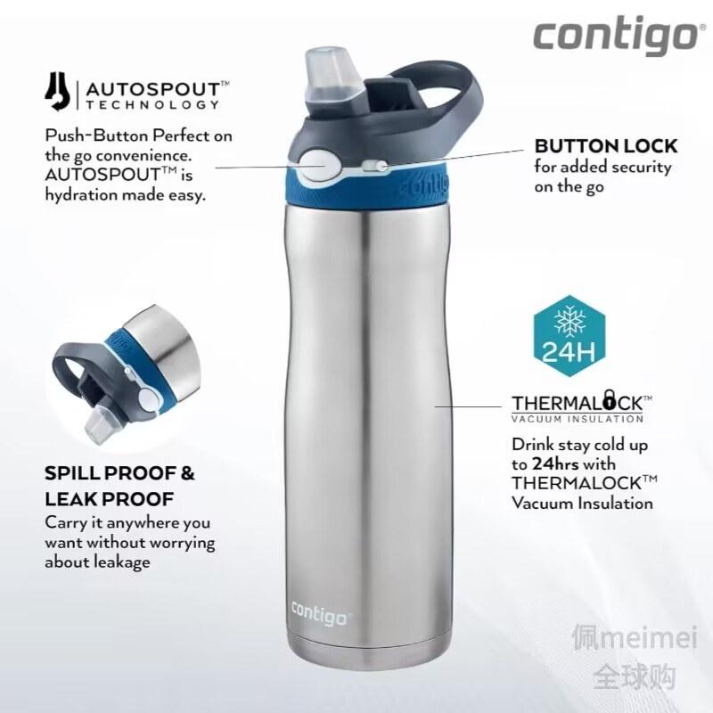 现货美国Contigo康迪克不锈钢真空保温杯车载杯便携运动吸管水杯