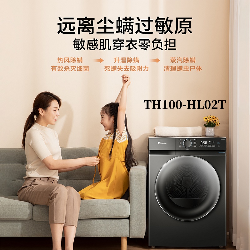 小天鹅10公斤家用滚筒热泵烘干机除菌变频全自动单独干衣机HL02T