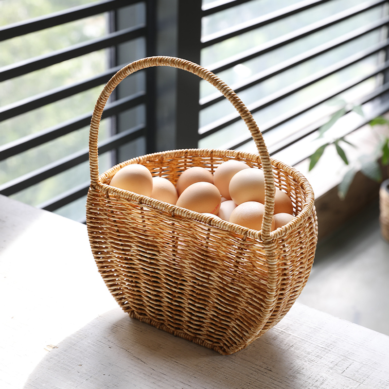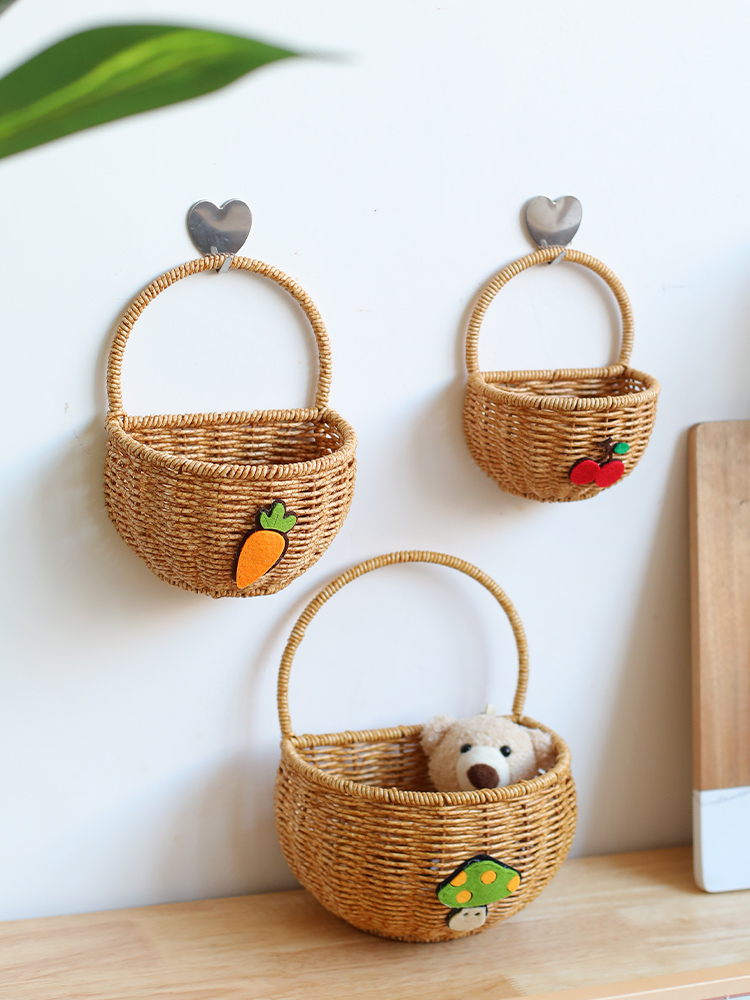 Kens厨房壁挂篮葱姜蒜收纳筐手工塑料藤编装饰挂墙插花篮门背收纳