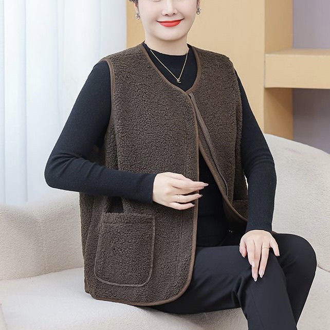 300斤加大码秋冬颗粒绒马甲中老年妈妈保暖背心宽松洋气外穿坎肩