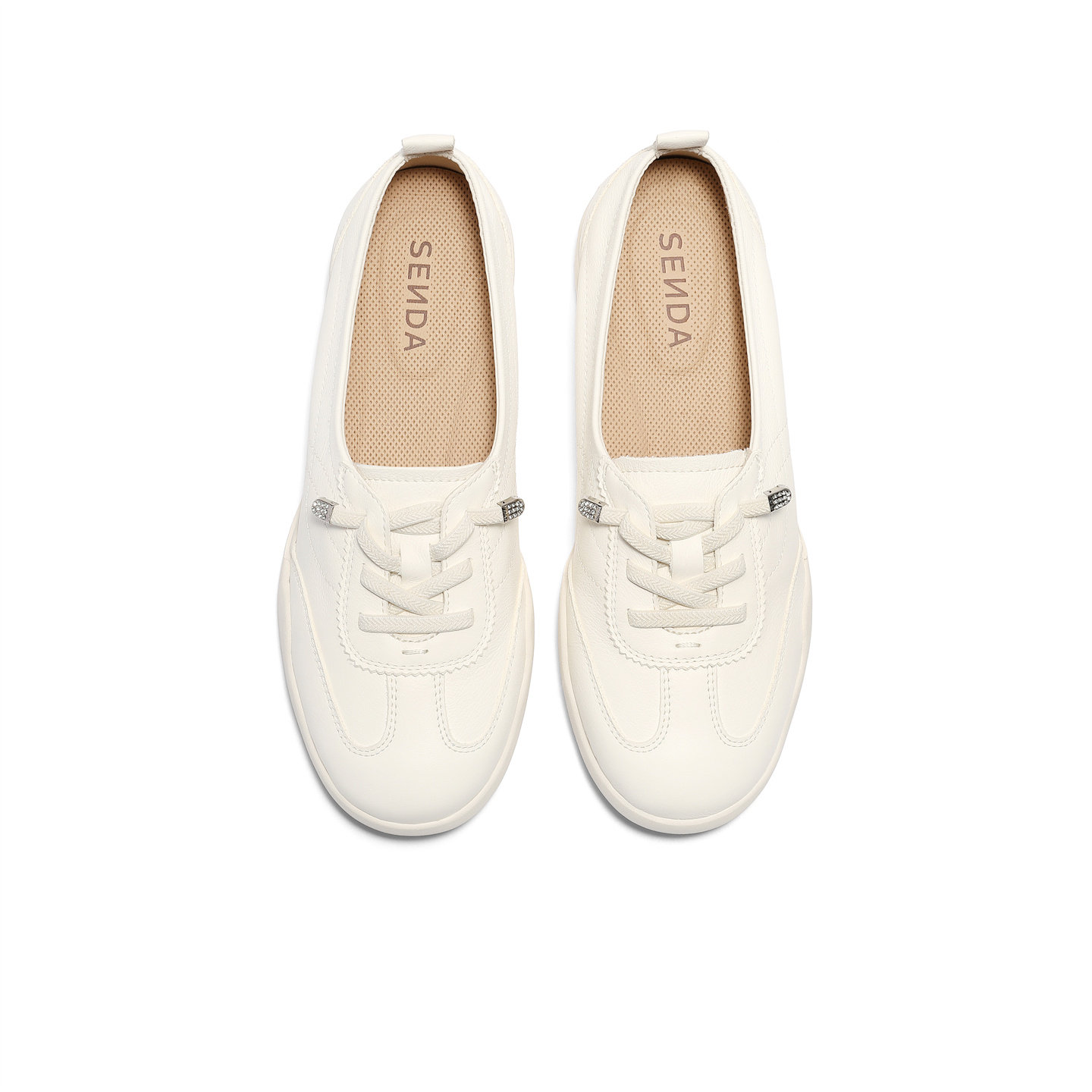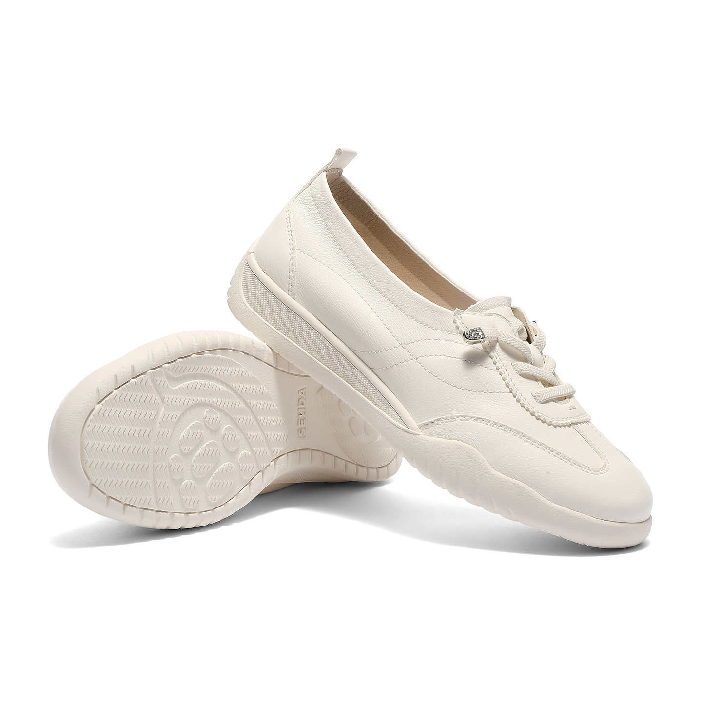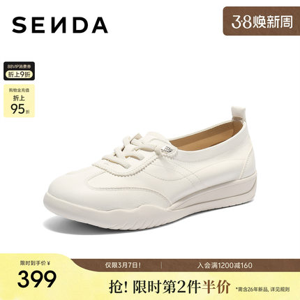 森达平底牛皮小白鞋女26年夏新